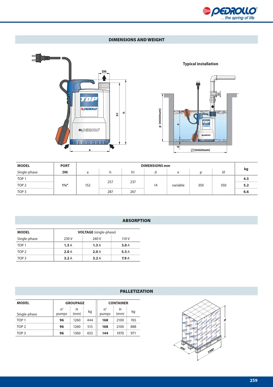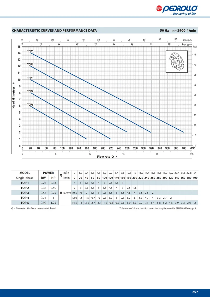 Pompa Celup TOP adalah pompa celup yang direkomendasikan untuk memompa air bersih tidak bersifat korosif, tidak mengandung kotoran sepeti Pasir, serabut dan endapan kolam. Dengan Efisiensi dan mudah dalam penggunaannya pompa Top dapat digunakan di Rumah tangga,maupun industri. Baik untuk taman,memompa air dari bak penampungan yang relatif dalam,dan untuk keperluan lainnya. - Kedalaman Bak penampung air max: 3Mtr untuk pompa TOP 1-2-3 - Kedalaman Bak penampung air max: 5Mtr untuk pompa TOP 4-5 Pompa dilengkapi dengan Pelampung yang membuat pompa bekerja secara otomatis. Lengkap dengan Kabel power 5 Meter untuk Pompa TOP 1-2-3 Lengkap dengan Kabel power 10 Meter untuk Pompa TOP 4-5