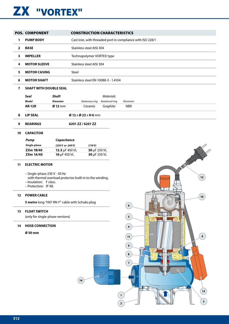 adalah pompa celup type vortex untuk air kotor dengan sedikit lumpur, namun tidak korosif. Pompa ini bekerja otomatis karena dilengkapi dengan pelampung.